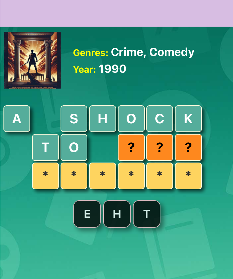 In Song & Movie modes, look for common small words first ("THE", "OF", etc.) to reveal the structure of the title.